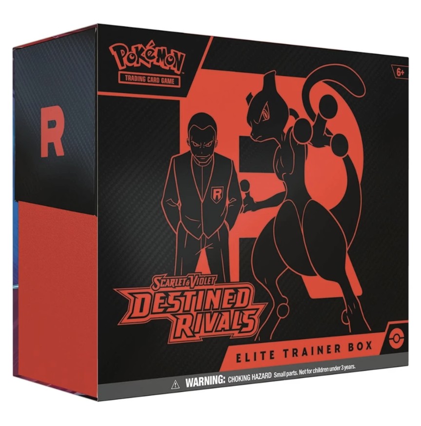 - Includes 9 x Pokemon TCG: Scarlet and Violet - Destined Rivals booster packs, 1 x full-art foil promo card featuring Team Rocket’s Wobbuffet, 65 x card sleeves, 45 x Pokemon TCG energy cards, 1 x player’s guide to the Scarlet and Violet - Destined Rivals expansion, 6 x damage-counter dice, 1 x competition-legal coin-flip die, 2 x plastic condition markers, 1 x collector’s box to hold everything, with 4 dividers to keep it organised and 1 x code card for Pokemon Trading Card Game live